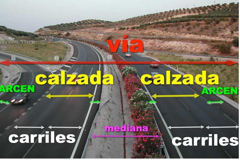 - La vía o plataforma es todo el espacio que forma la carretera, incluyendo la calzada, los arcenes y la mediana si la hay.