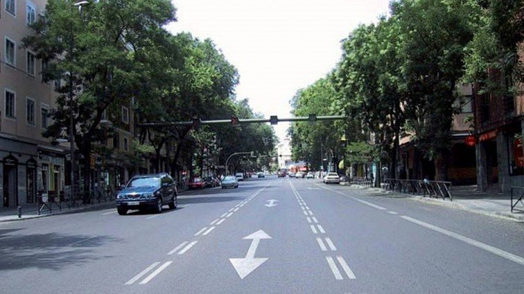 - Las marcas viales de la foto muestran la distancia mínima frontal de seguridad.